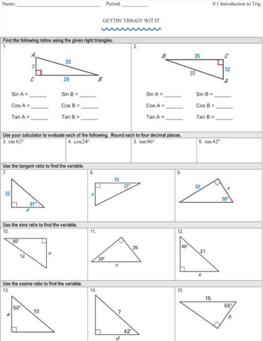 It is based on Will Smiths rap song Gettin Jiggy Wit It entitled Get Triggy Wit It. Download Gettin Triggy With It Worksheet Answer Key PDF. NameAlgebraII121 WorksheetPeriod91 Introduction to TrigNameGETTIN TRIGGY WIT ITSOHFind the following ratios using the given right triangles1CAHTOA2Sin A Sin B Sin A Sin B Cos A Cos B Cos A Cos B Tan A Tan B Tan A Tan B Use your calculator to evaluate each of the following.